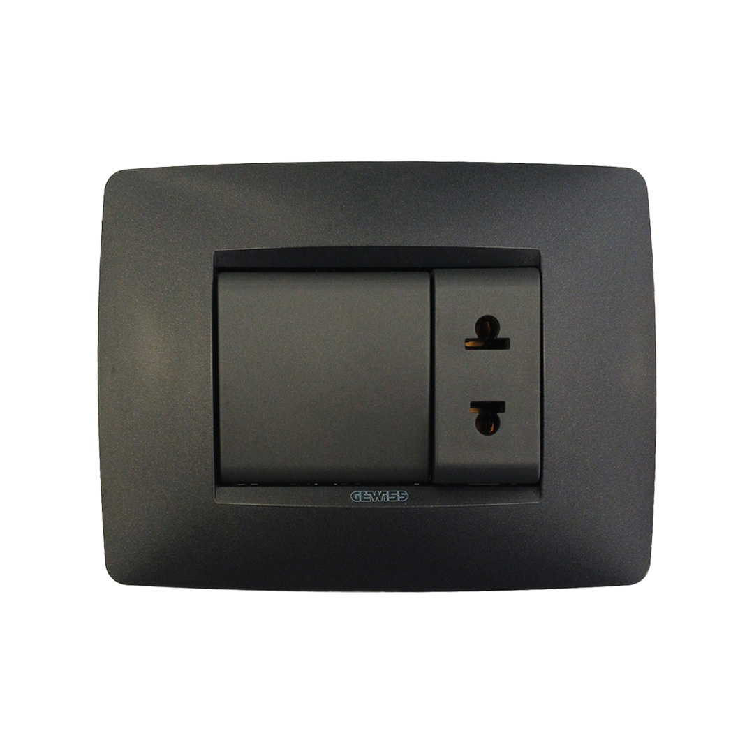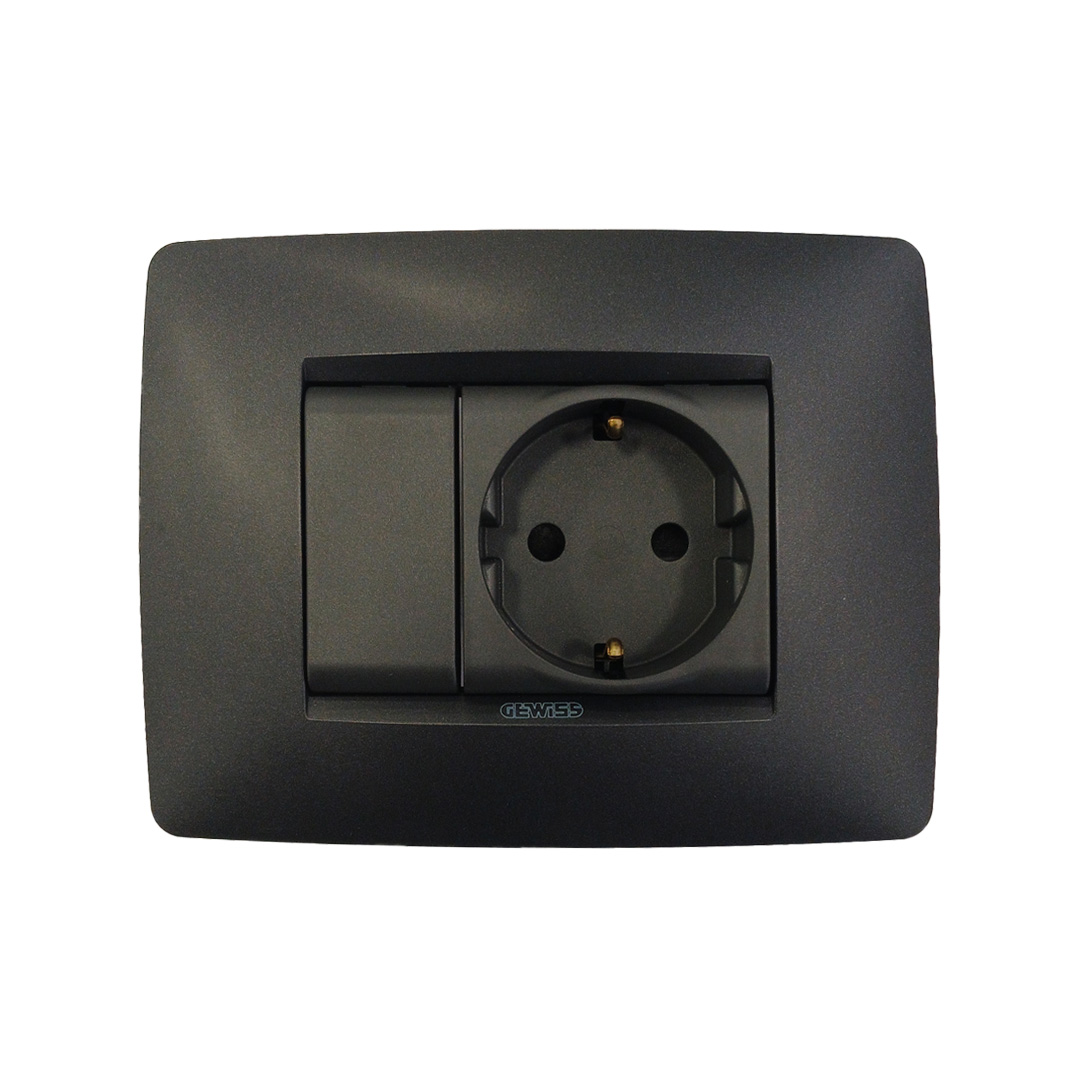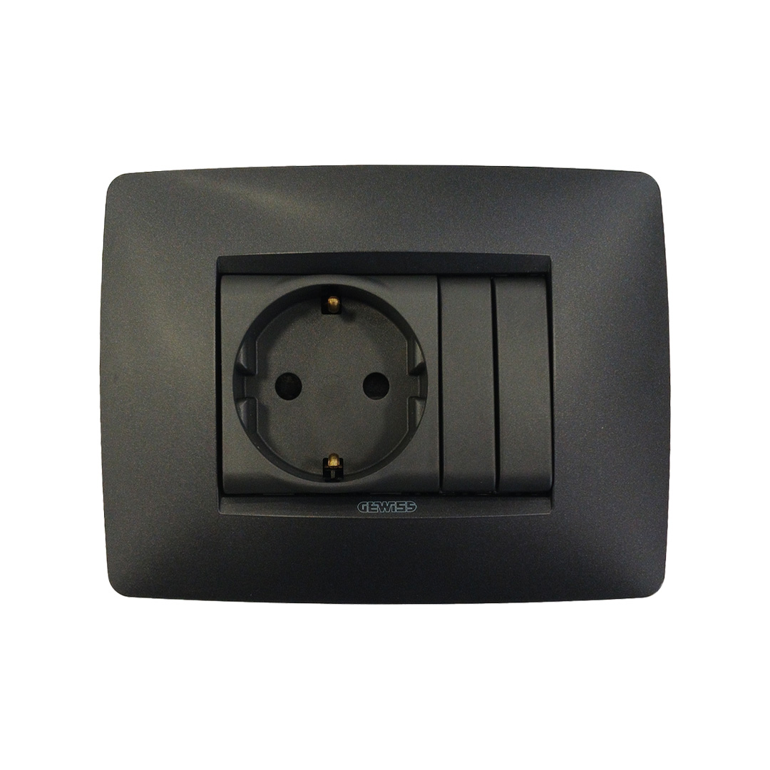 Gewiss GW12241 2M torpaqlı elektrik yuvası + GW12021 0,5M elektrik açarı mat qara rəng
