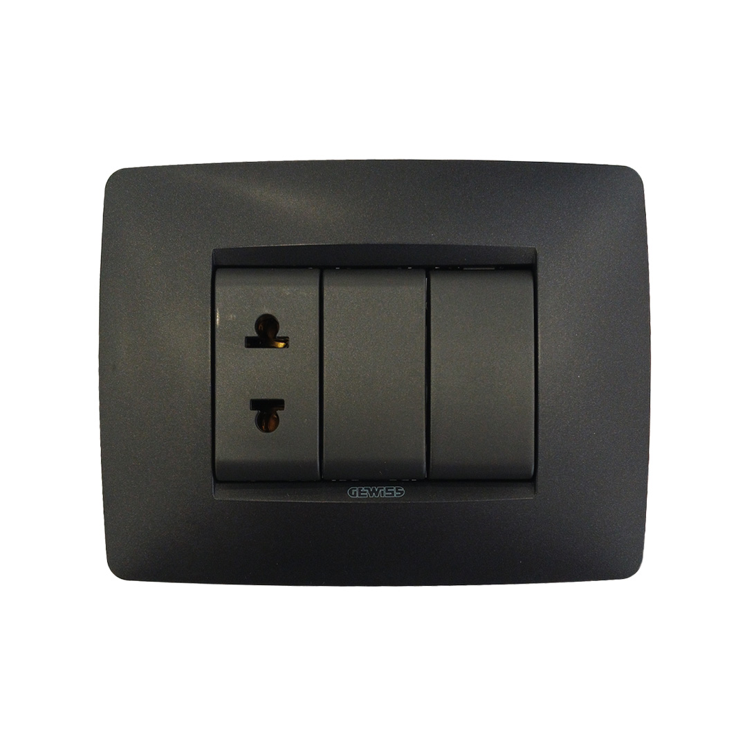 Gewiss GW12031 2M elektrik açarı + GW12287 1M elektrik yuvası mat qara rəng