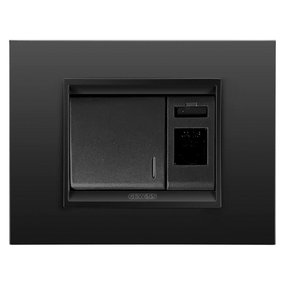 Gewiss GW12032 2M işıqlı elektrik açarı qara, GW12421 internet elektrik yuvası cat 5 utp metal çərçivə monoxrom