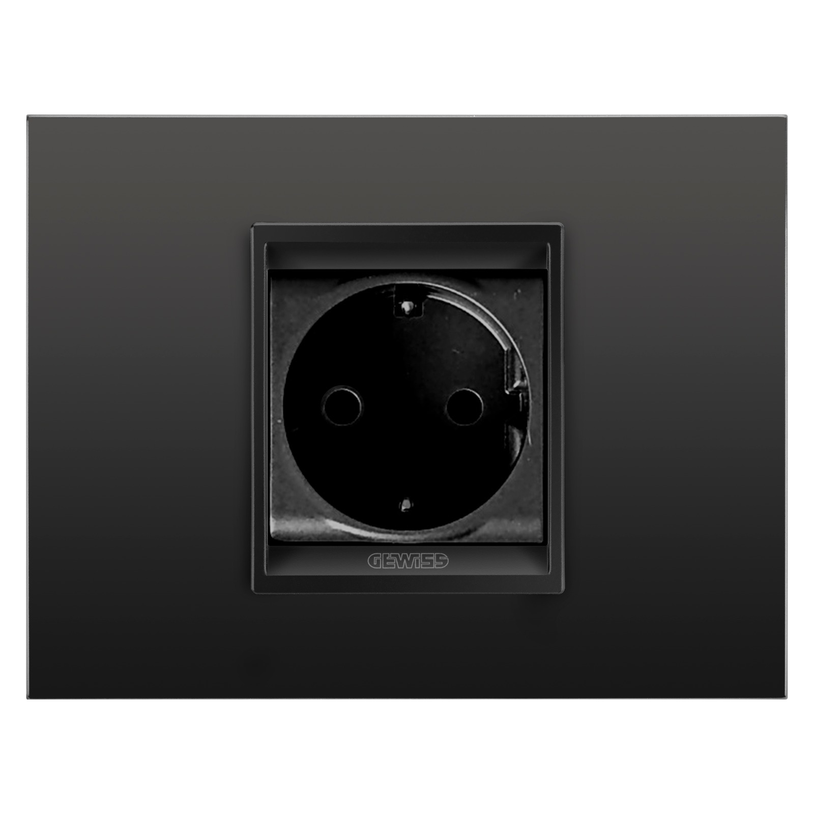 Gewiss GW12287 1M elektrik yuvası qara, GW12051 vavien qara, GW12241 torpaqlı elektrik yuvası metal çərçivə monoxrom