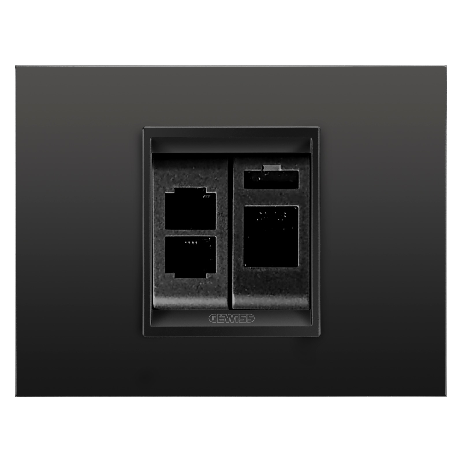 Gewiss GW12287 1M elektrik yuvası qara, GW12403 telefon elektrik yuvası 2li qara, GW12447 usb elektrik yuvası qara, GW12423 internet elektrik yuvası cat 6 utp metal çərçivə monoxrom