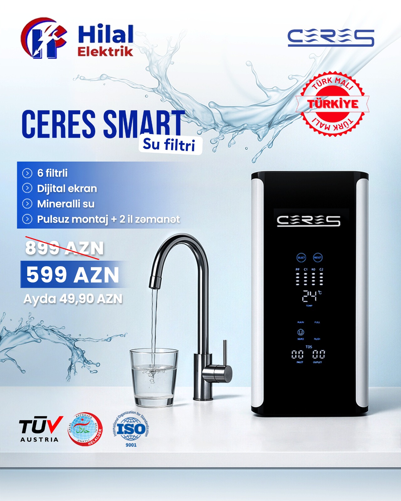 Filtre Ceres Smart, pompalı, 6 silindirli, 8 lt, 430x162x452 mm