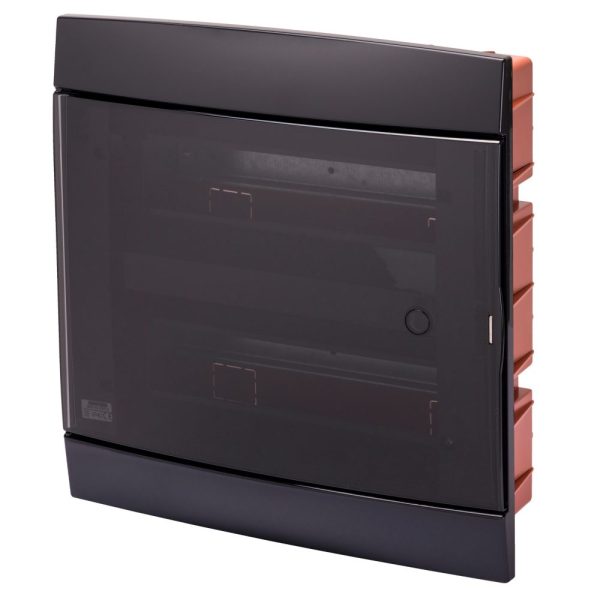 GW40233TN, Ölçülər (U x A x P) 330 x 338 x 28 mm, 24 (12×2) +2 DIN modulu üçün estetik şəkildə quraşdırılmış avtomat qutusu, tonik qara rəngdə, tüstülü qapılı, alçıpan divarlara quraşdırmaq üçün idealdır